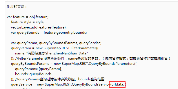 queryService = new SuperMap.REST.QueryByBoundsService(urldata, {