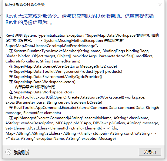 使用Bentley导出插件导出时,Bentley软件会崩溃报错