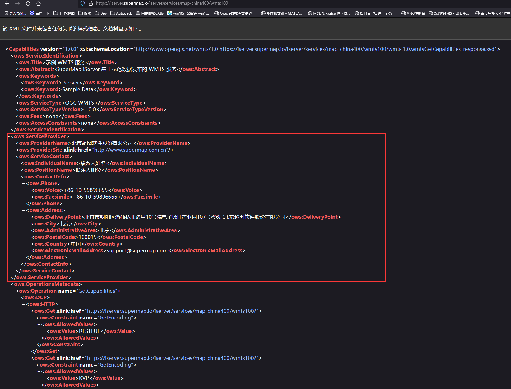 您好,iserver默认配置发布服务时,wmts、wms等服务,在最开始server或ServiceProvider标签内的描述是超图公司的描述。