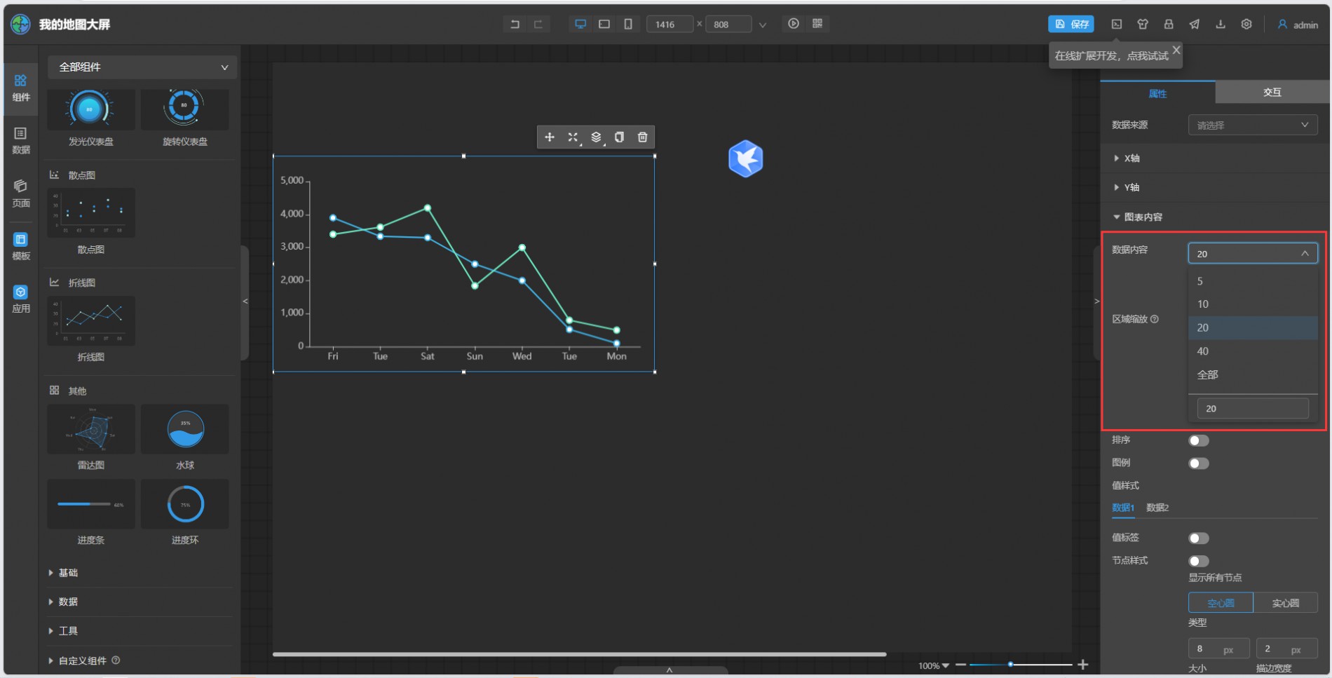 【iPortal】大屏添加折线图组件,添加数据后只展示了20条数据,如何展示全部数据?