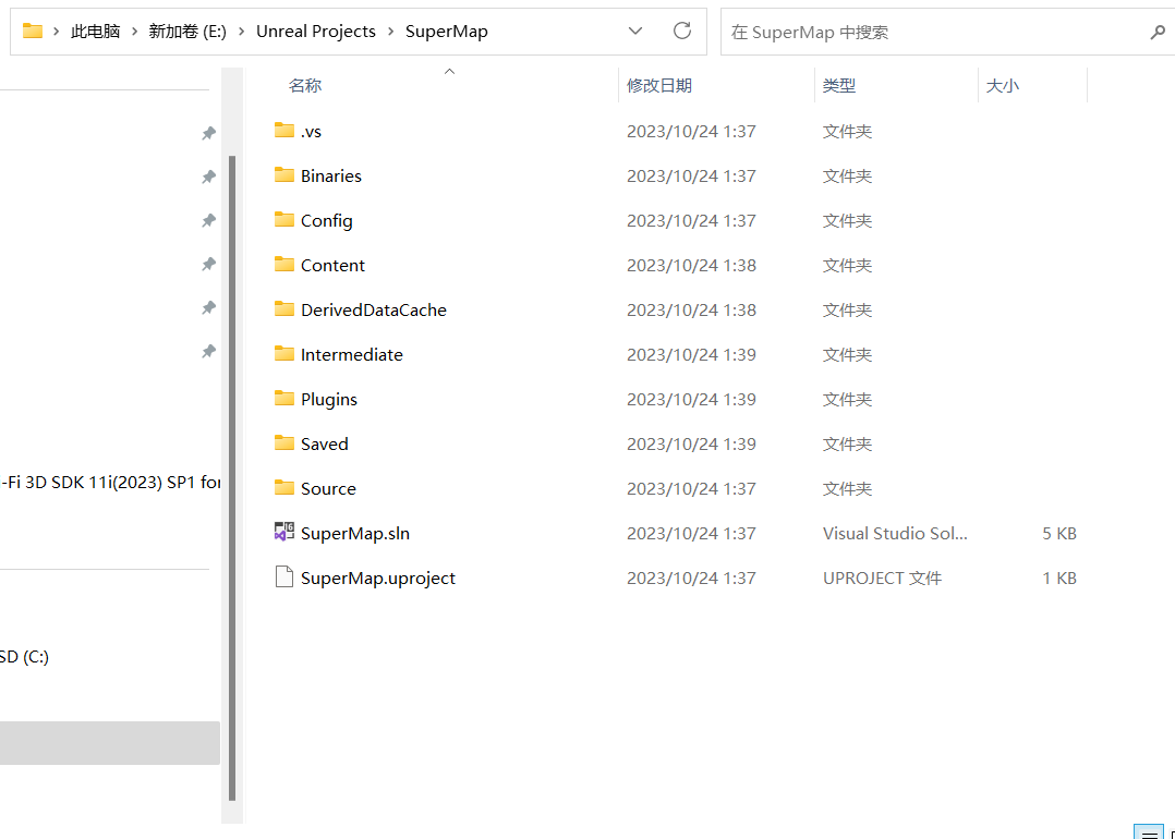 我右击工程目录没有Generate Visual Studio project files这个选项,用的是vs2019,然后插件是这个版本SuperMap Hi-Fi 3D SDK 11i(2023) SP1 for Unreal用的是UE4.27