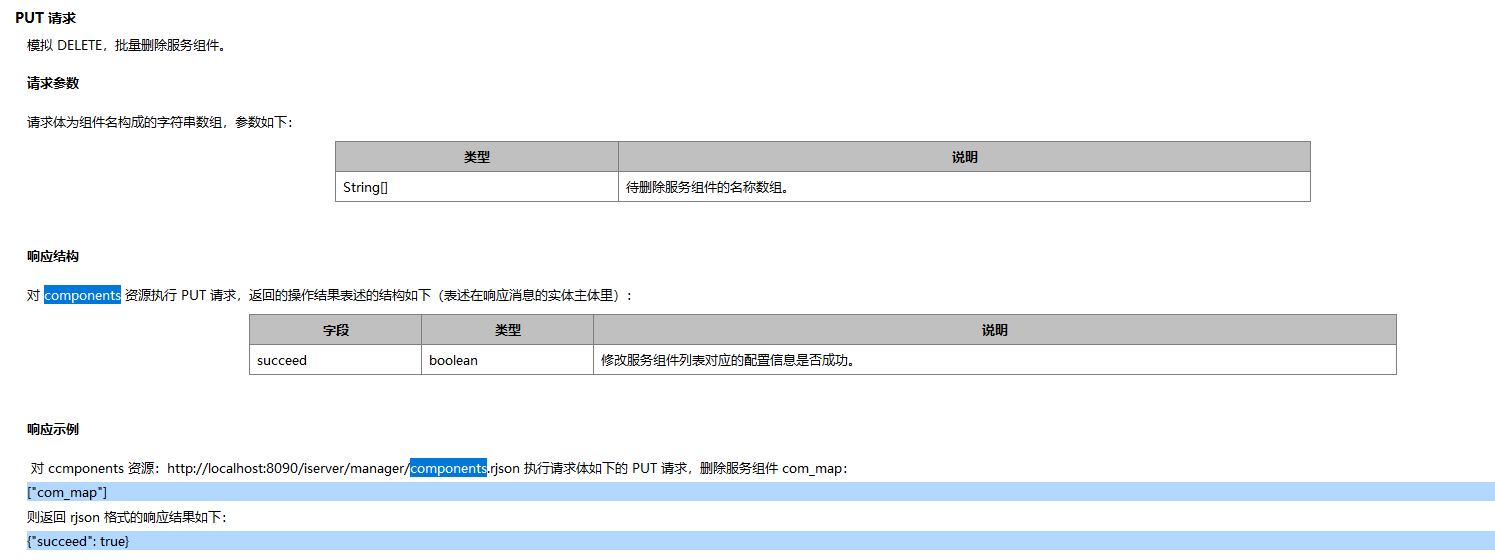 【解决办法】通过对 components 资源构造 PUT 请求来模拟 DELETE,批量删除服务组件。具体参数如下:贴图