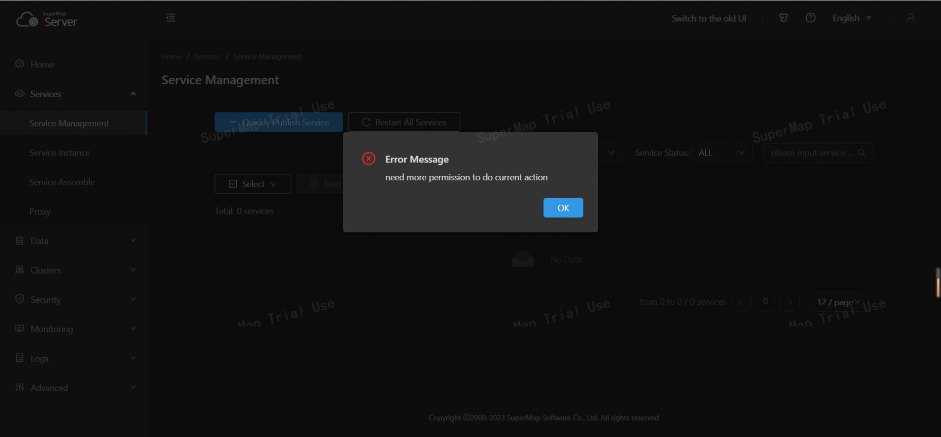 问题:想请问一下,在一台机器上可以同时运行两个iserver吗?我复制了两个iserver产品包在电脑上,分别设置了两个不同的端口号。启动了第一个iserver之后并登录,再启动第二个iserver,登录第二个后查看第一个iserver提示如下图: