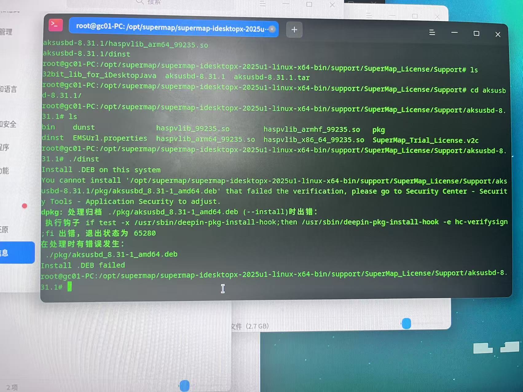 超图FAQ:在国产统信操作系统上安装iDesktopX 12.0.1的许可驱动过程中报错,无法正常安装。