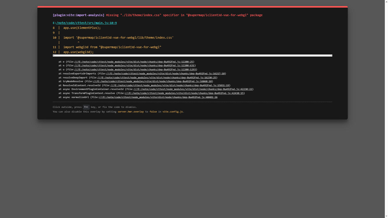 超图FAQ:使用npm方式安装vue - iClient3D for WebGL时,出现css文件存路径错误问题,该如何解决?