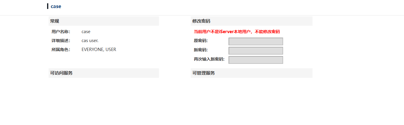 【问题原因】cas配置文件填写有误,角色字段没有匹配上,导致cas登录之后没有返回角色字段从而iServer没办法匹配对应角色