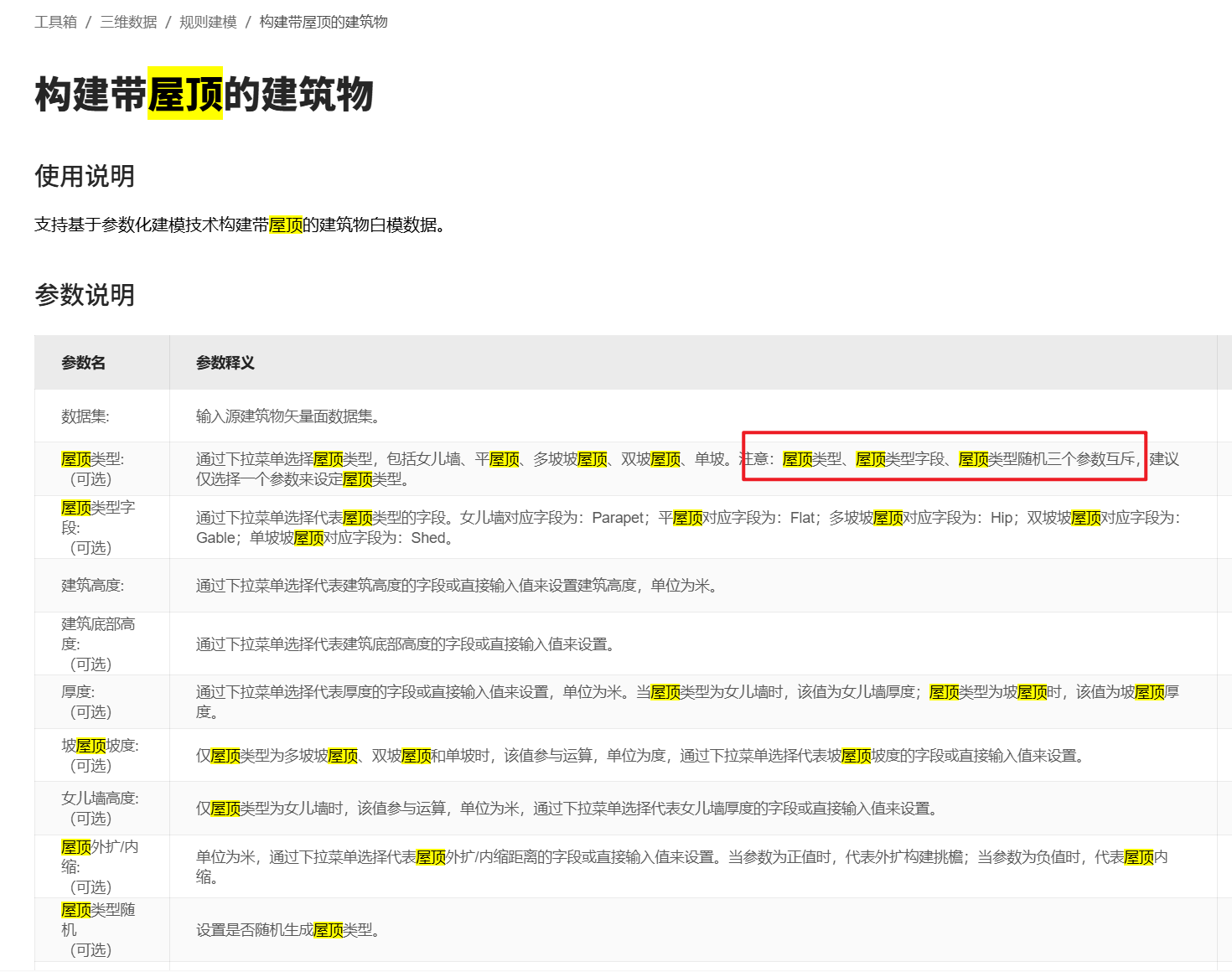 【解决办法】选择了“屋顶类型字段”,就不会用屋顶类型去设置。屋顶类型、屋顶类型字段、屋顶类型随机三个参数互斥。优先级从低到高。