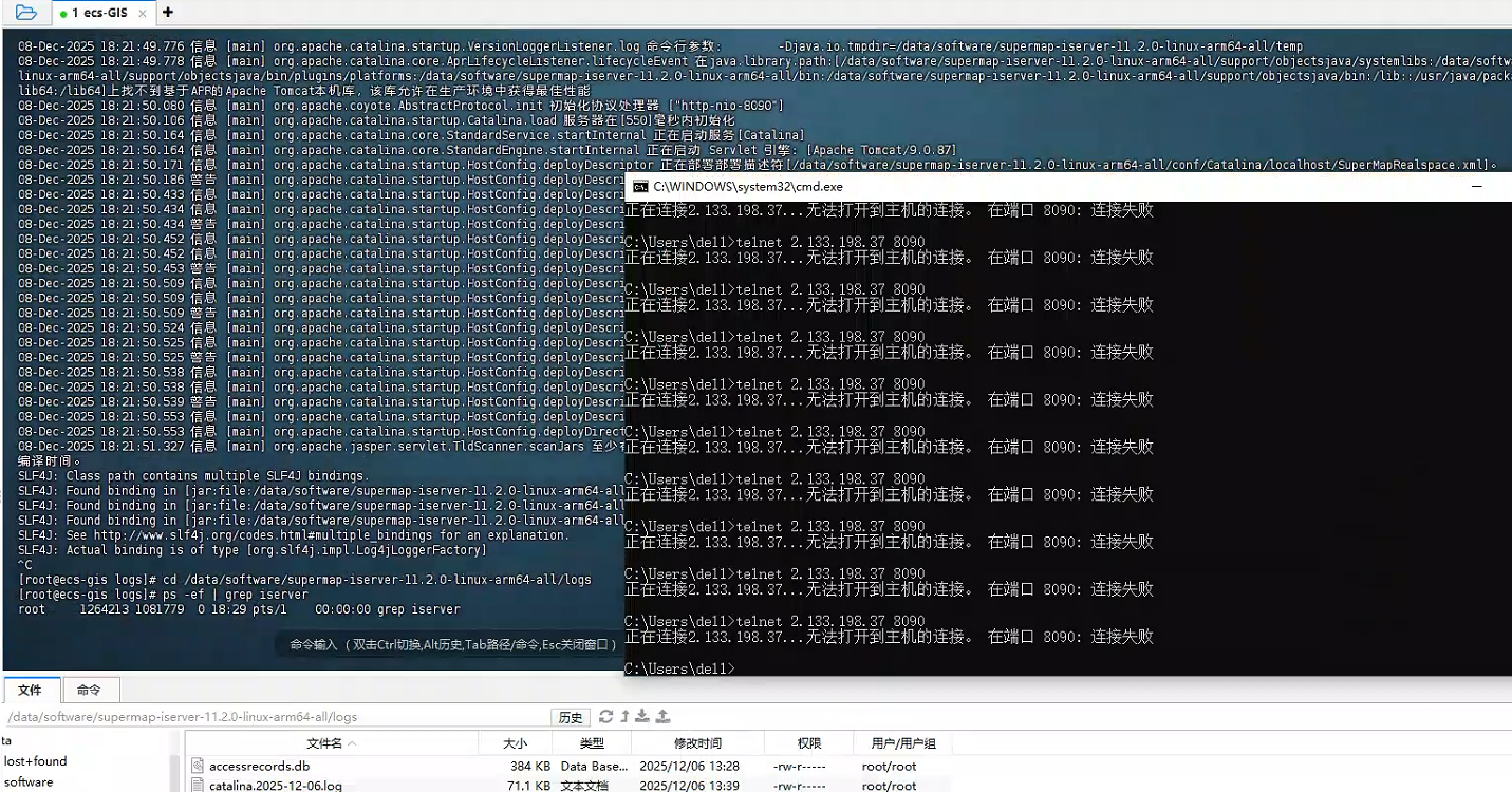 iServer启动后用telnet测试端口,显示无法连接