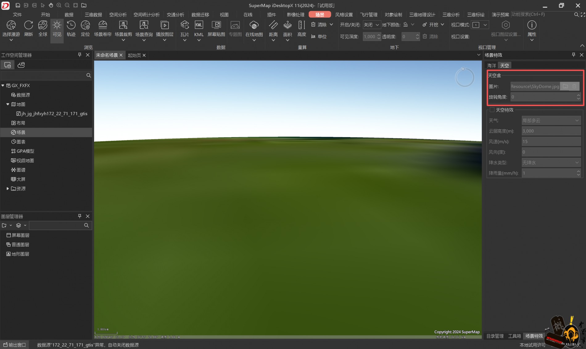在iDesktopX中设置了天空盒但无效果,已设置V2渲染引擎。