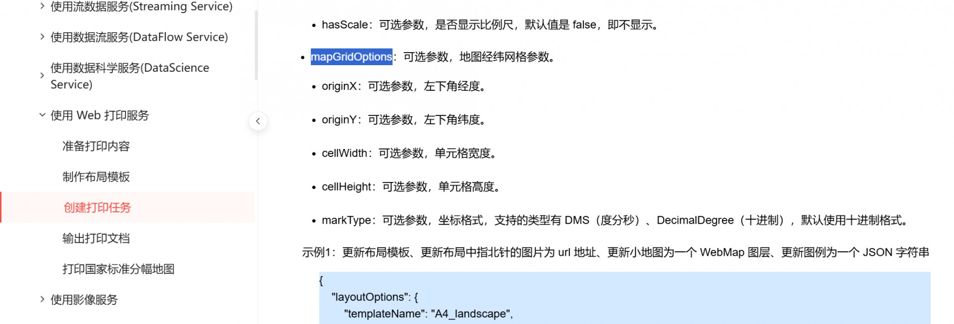 【问题原因】打印参数配置问题 【解决办法】在打印参数中配置mapGridOptions