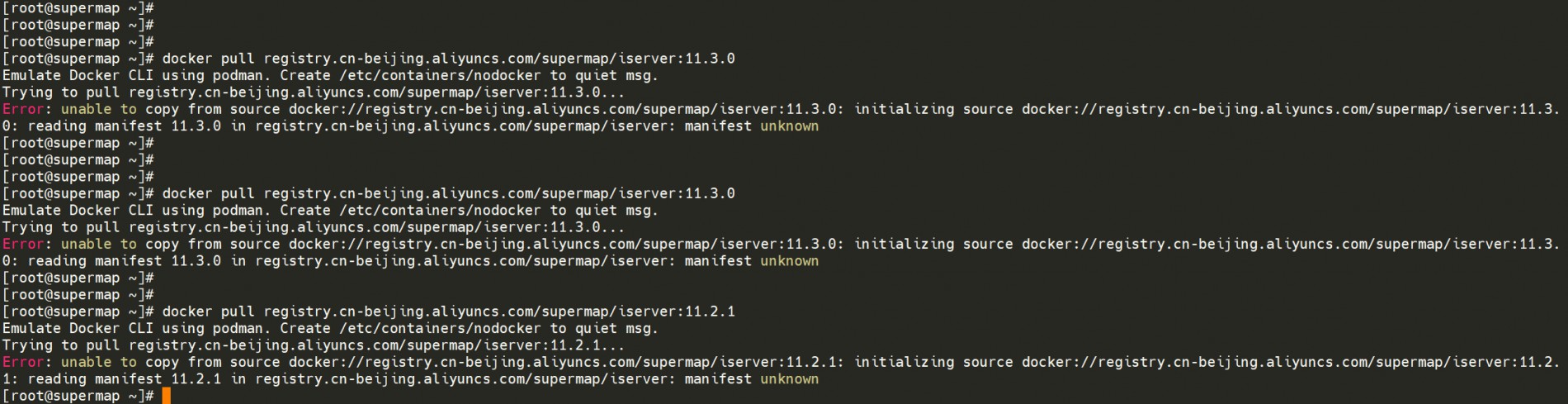 【问题原因】拉取时tag写错了 【解决办法】按照dockerpullregistry.cn-beiing.aliyuncs.com/supermap/iserver:11.2.0-amd64拉取正常