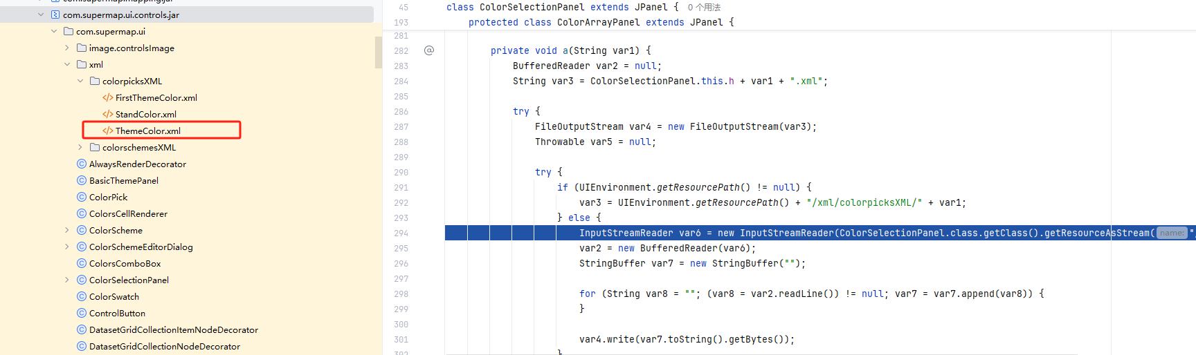看着是这个ColorArrayPanel类里读文件出的错,不过我看引用的组件类包里有这个文件