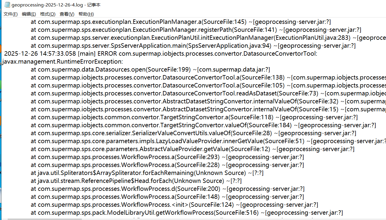 iServer管理页面中的GPA(地理处理自动化)页面内容加载不出来,一片空白,同时iServer后台日志有相关的错误信息。