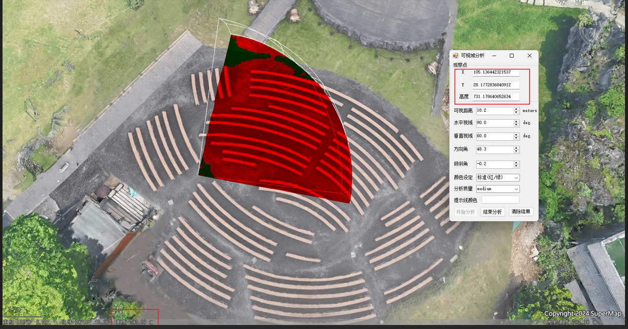 问题:利用示例代码组件实现的可视域分析和在桌面端对模型上该点进行分析结果存在很大的差异