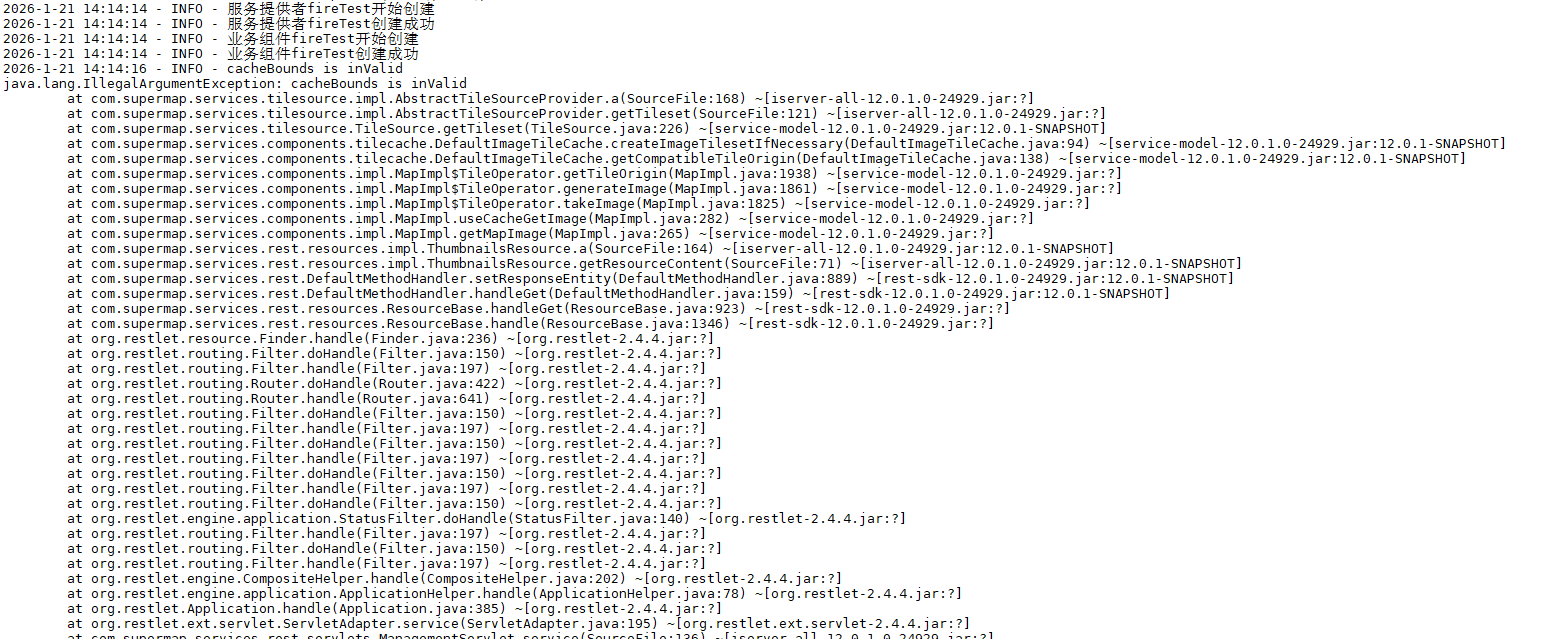 使用产品:iserver 12i 操作系统:win7 x64 ,国产麒麟系统 数据类型:文件型工作空间 问题详细描述:我的工作空间使用达梦数据源,我本地通过idesktop处理好图层并发布到我的本地的Iserver可以正常显示,但是将这个工作空间发布到麒麟系统服务器上的Iserver就出现边界错误问题,具体的日志报错如下,是不是因为我的服务器上没有安装达梦数据库导致的。