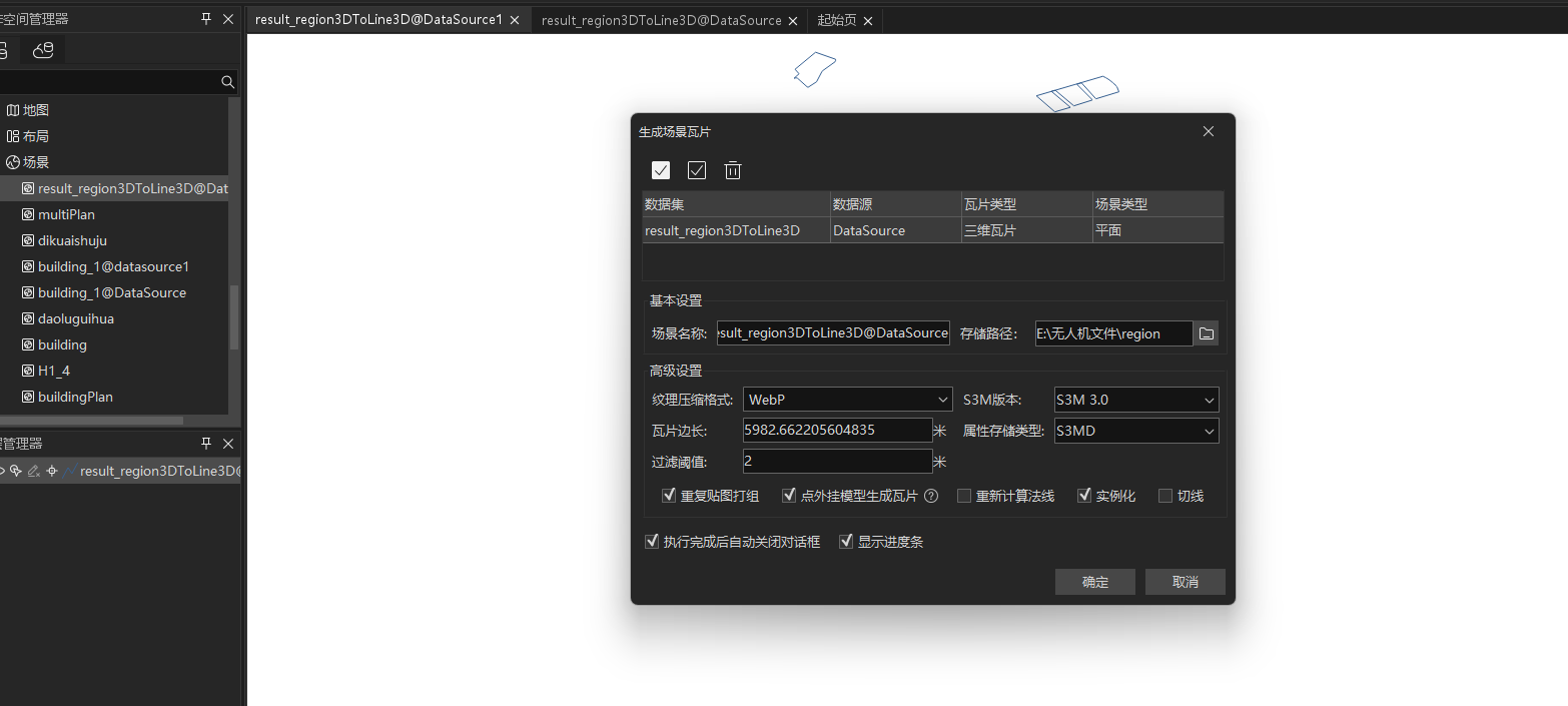 - 生成S3M场景缓存时使用的参数配置(可通过截图或文字说明);