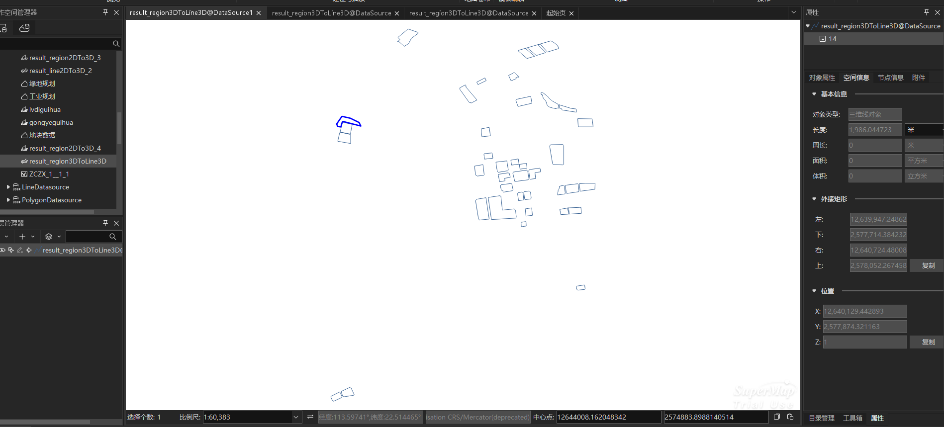 1、 检查三维线数据转换后的几何完整性 :在 iDesktopx 中确认转换后的三维线数据集是否包含必要的Z值(高程)和属性信息。