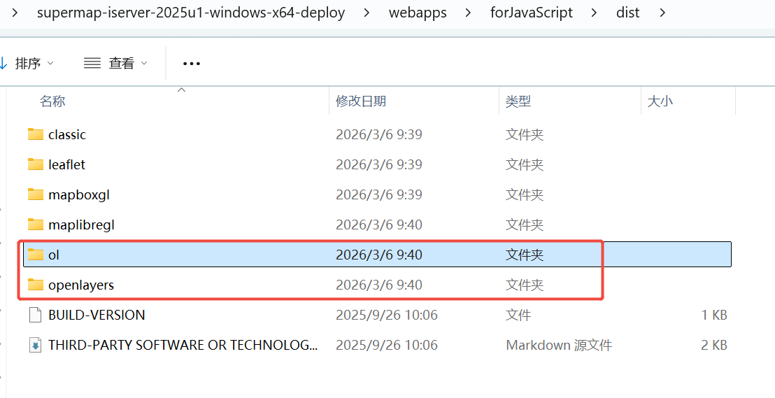 咨询iServer产品包中自带的OpenLayers类库,ol文件夹和openlayers文件夹内的库文件有何区别。
