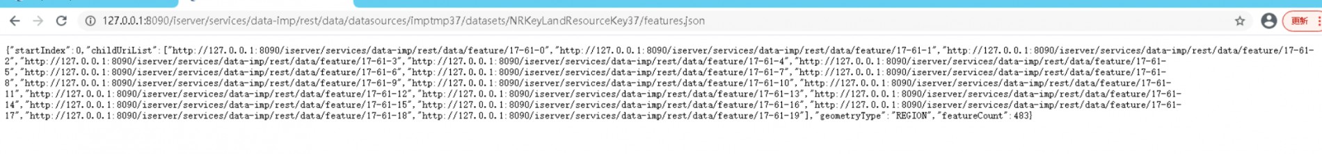 【问题原因】iServer数据服务的要素查询REST API默认采用分页机制返回结果,单次请求返回的要素数量有限,默认返回19条。 【解决办法】在请求的URL中,通过设置查询参数toIndex为-1,即可获取并返回该数据集下的所有要素。