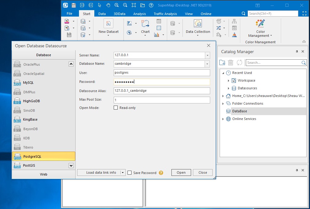 这个功能是用来存储数据的,你可以在桌面新建一个数据库,然后可以直接在桌面中对该数据库进行新建数据集,这些数据会存储在数据库中。但是你直接在PostgreSQL中建的数据库是不能在桌面里链接的。因此一般的操作就是,在桌面新建数据库,再在桌面存储数据,而不是在PostgreSQL中新建数据库,存储数据。;
