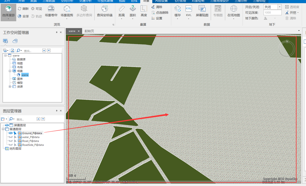 在idesktop中利用二维矢量数据构建的场景,生成场景缓存后,显示有问题。