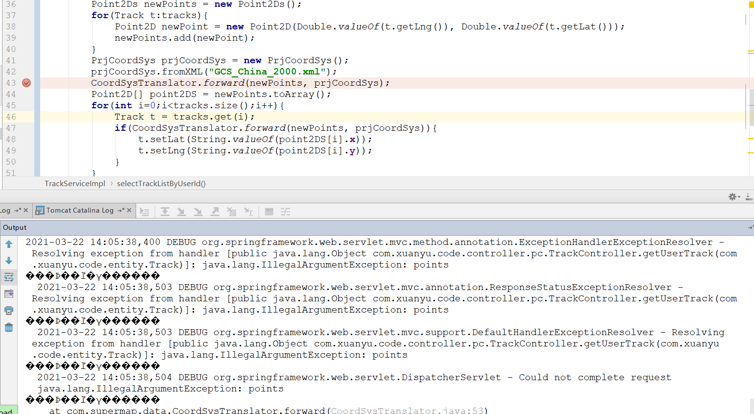 我使用CoordSysTranslator 投影转换类中的forward方法进行经纬度到投影坐标的转换的过程中,报出如下错误。错误信息是乱码,我使用的文件是超图技术人员提供的转换文件,目前不知道问题出在哪,请问该怎么解决